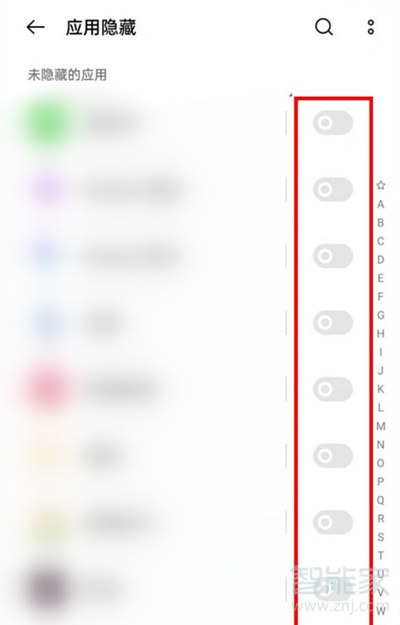 3、找到要隐藏的应用,打开后面的开关即可。