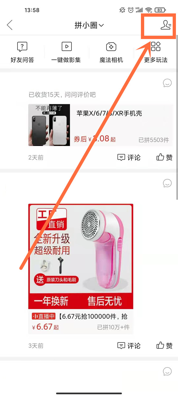 1、打开拼多多app,点击拼小圈。
