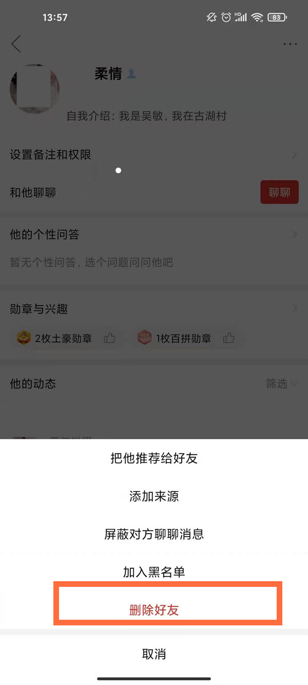 5、点击删除好友即可。