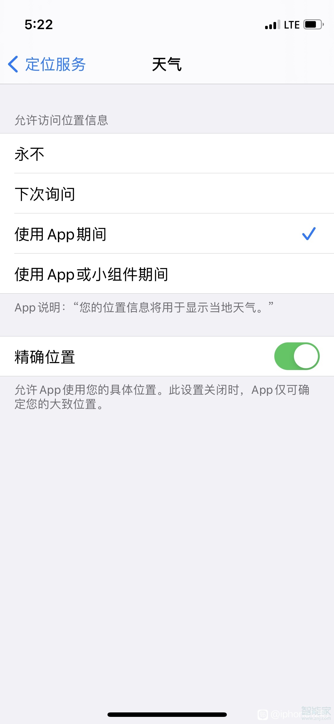 2、可能是没有开启定位权限,前往设置-隐私-定位服务-天气,设置为使用app期间或使用app或小组件期间即可。