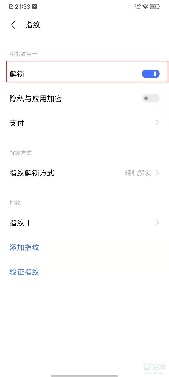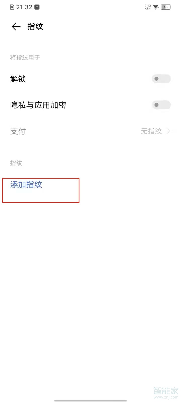 3、再点击【添加指纹】,将自己习惯解锁的手指进行录入指纹。