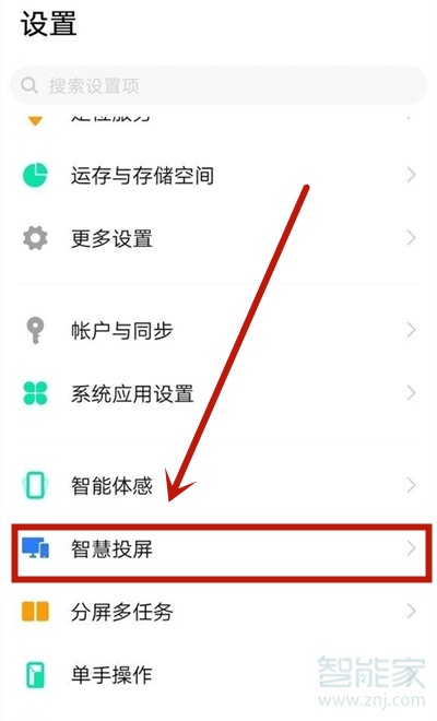 2、也可打开手机设置,点击进入【智慧投屏】,