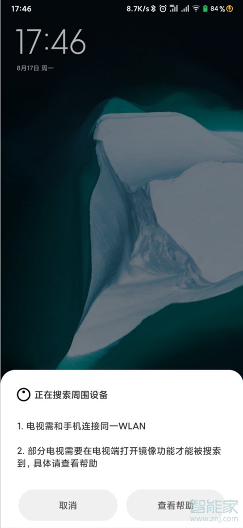 手机会自动搜索周围可投屏的设备,点击连接即可。