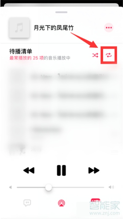 4、会弹出待播清单窗口,点击右侧的循环图标;