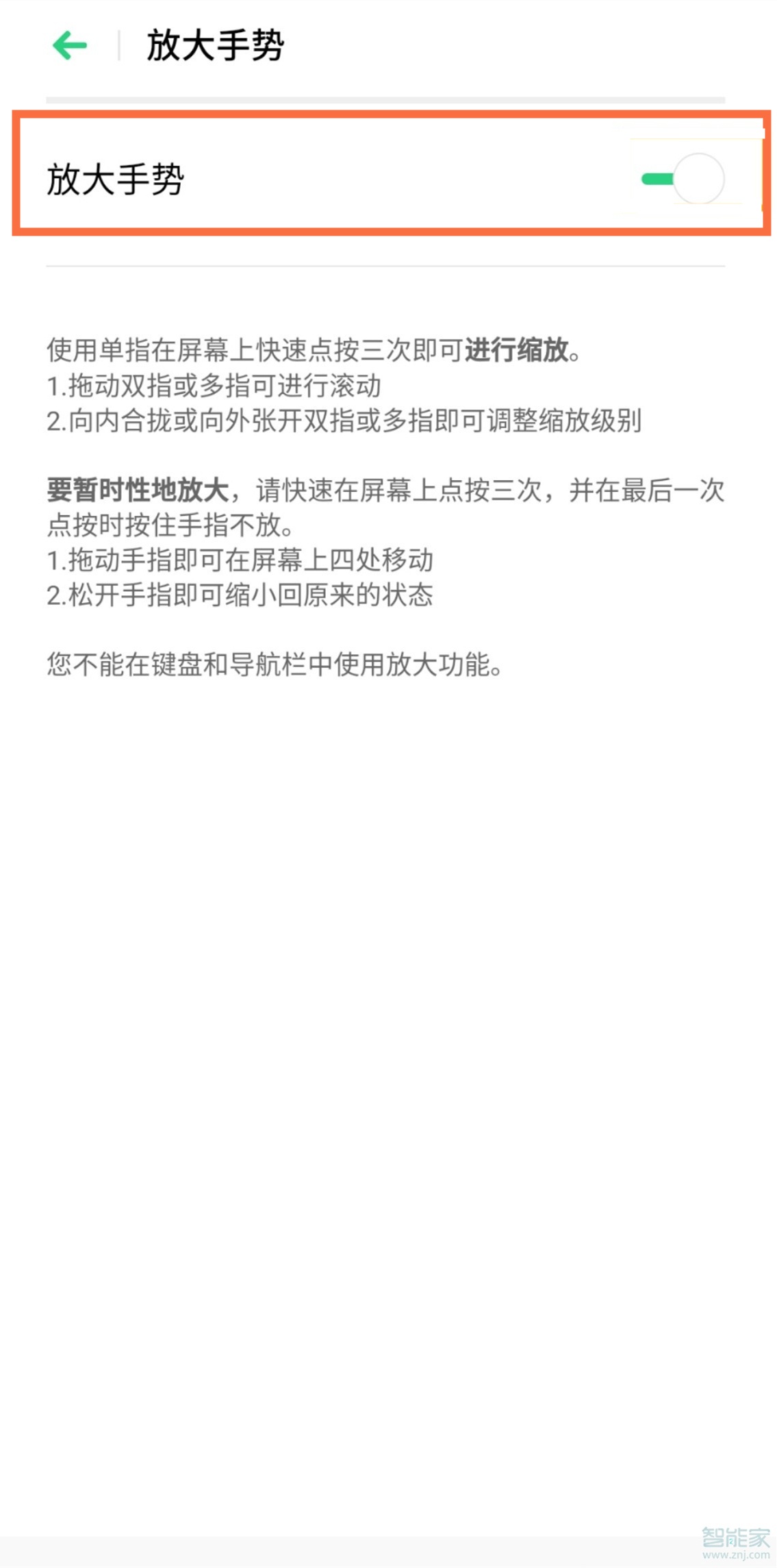 oppo手机没有放大镜功能,但是有放大手势功能。开启放大手势功能步骤如下: