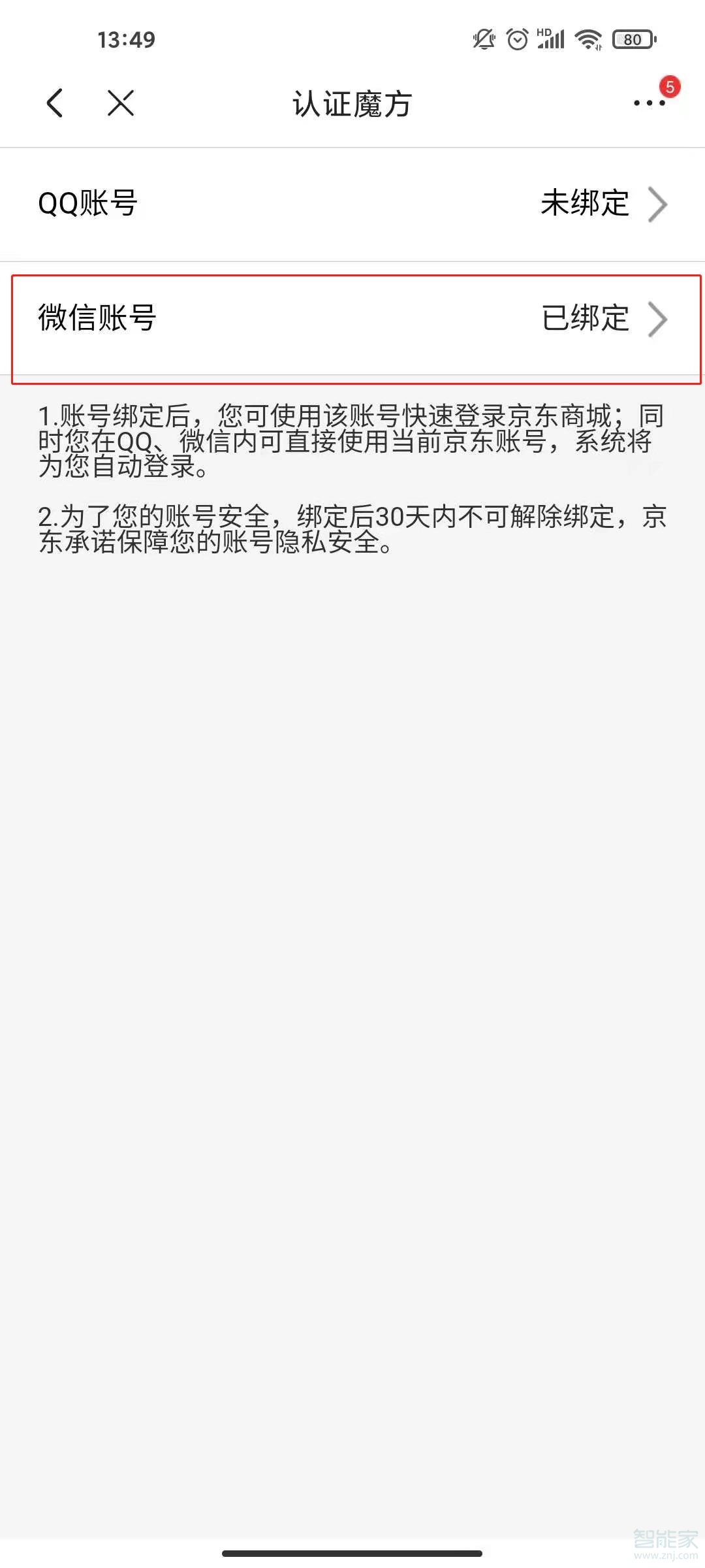 4、点击【微信账号】后面的未绑定,根据手机提示进行绑定。