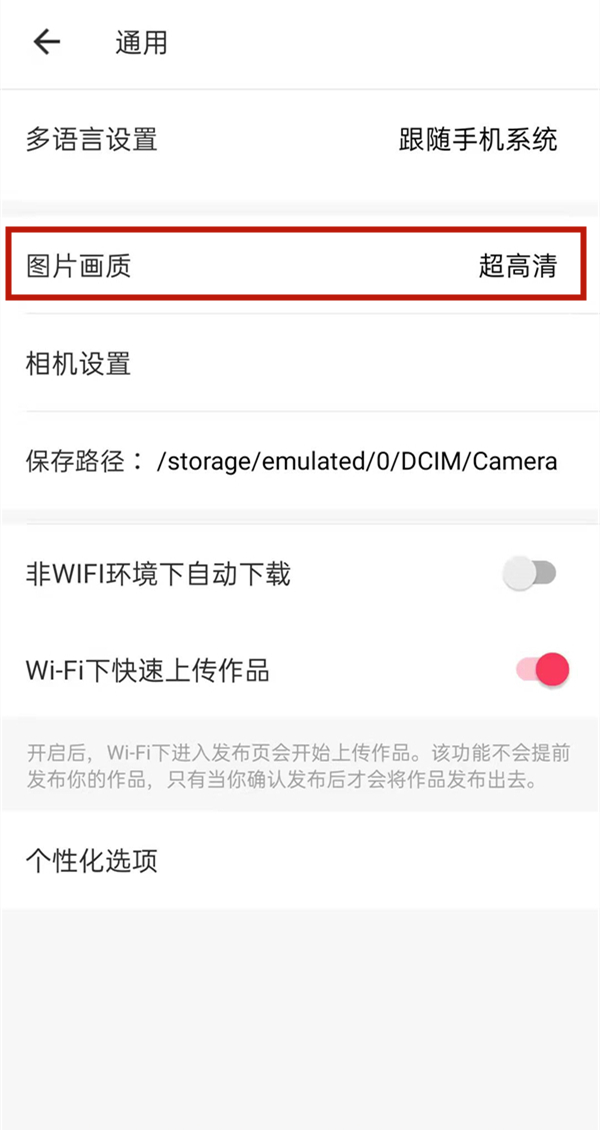 手机美图秀秀不支持自定义分辨率,只能更改画质,需要在通用设置里修改,具体操作步骤如下: