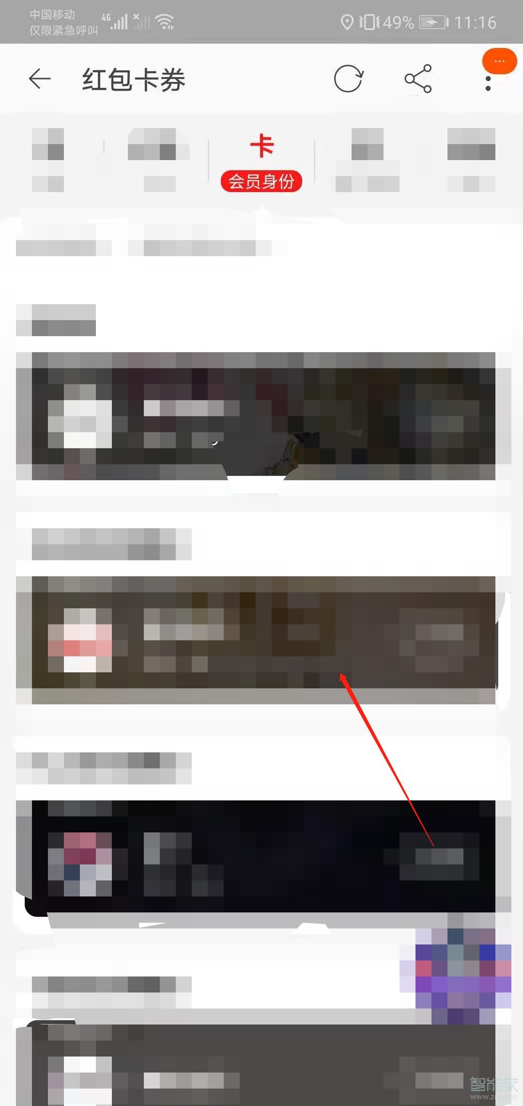 3、点击【卡】,在卡的页面找到自己想要取消的店铺会员。