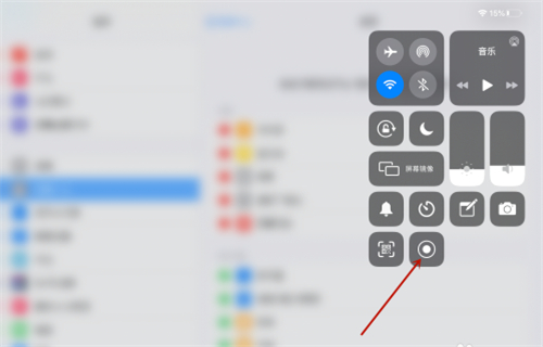 4、从平板右上角下拉打开快捷控制中心功能区,点击录制图标即可开始录屏。