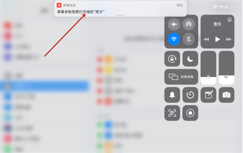 5、录制完成后,点击录屏停止的图标,录屏视频就会自动保存到iPad相册当中。