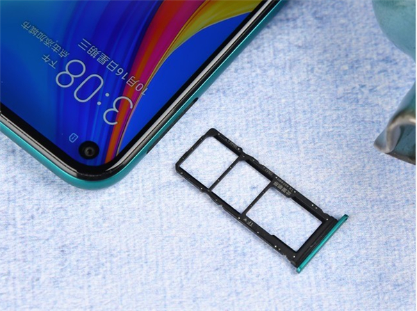 华为畅享10的机身左侧为SIM卡槽,本机为双SIM+Micro SD卡三卡槽,最大支持512G Micro SD卡扩展。