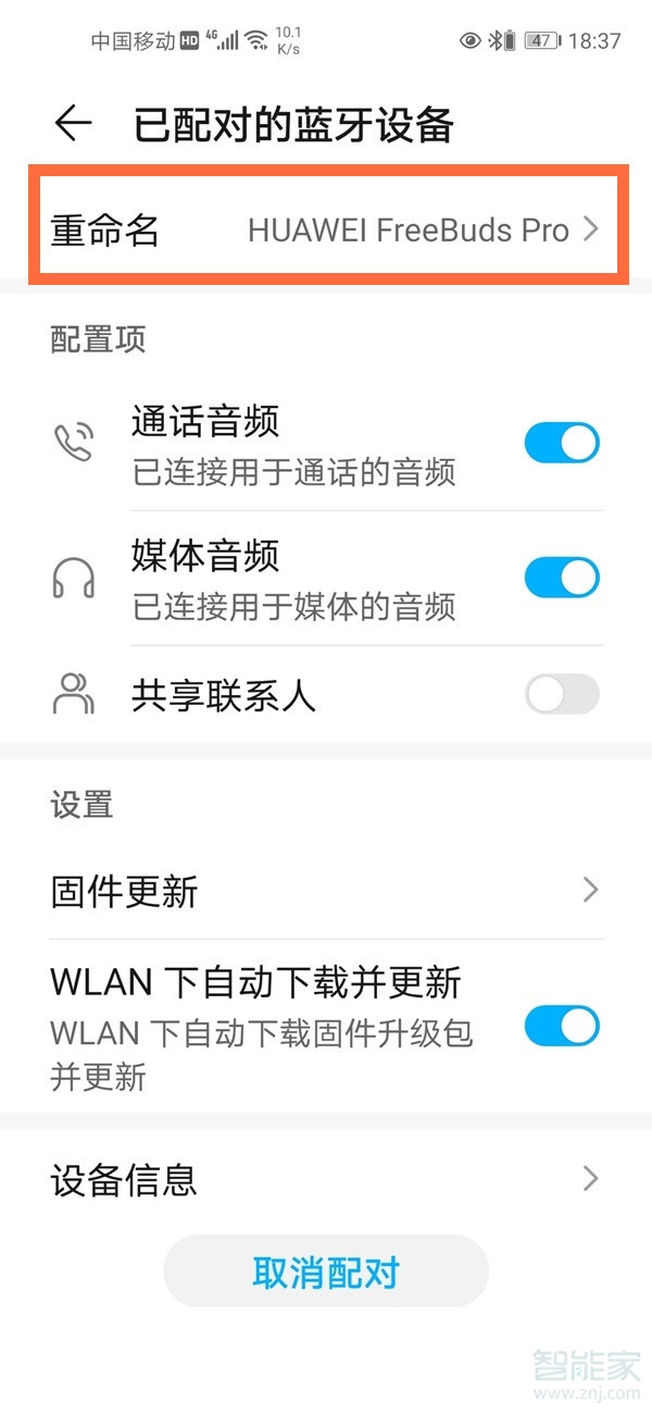 ️小编提示:修改蓝牙名称仅在本机生效,华为freebudspro耳机连接其他手机时蓝牙名称为默认名称。