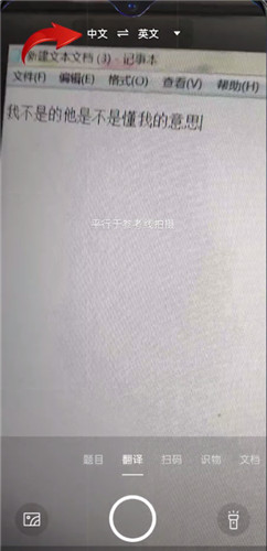 3、对要翻译的东西拍照,就会自动进行翻译。