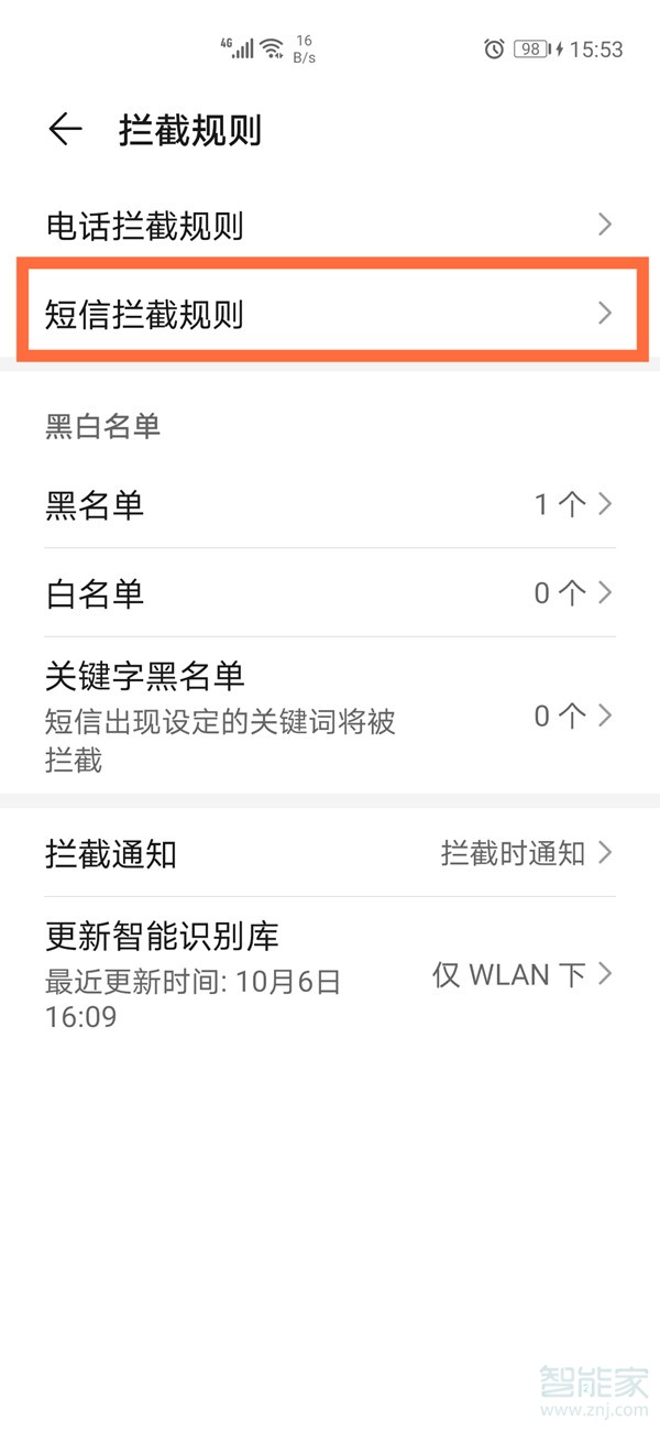 3、点击【短信拦截规则】。