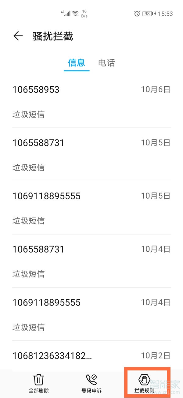 2、点击底部【拦截规则】。