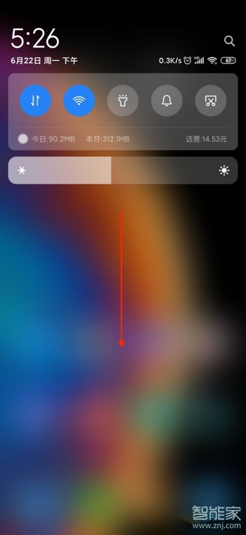 1、从手机屏幕顶端向下滑动调出控制面板,并继续下拉,展开“控制中心”的全部功能。
