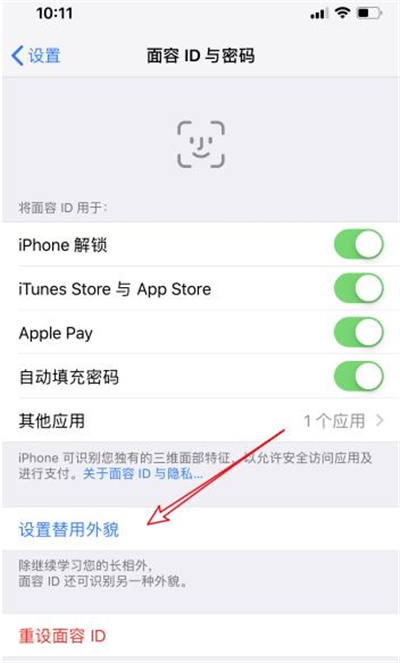 苹果11设置两个面容解锁设置步骤:「设置」-「面容ID与密码」,输入解锁密码,然后点击下方的「设置面容ID」。录入之后如果想设置第二个面容ID,只需点击「面容ID与密码」下方的「设置替用外貌」即可。