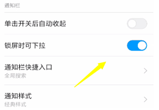 3、找到【锁屏时可下拉】,将开关开启即可。