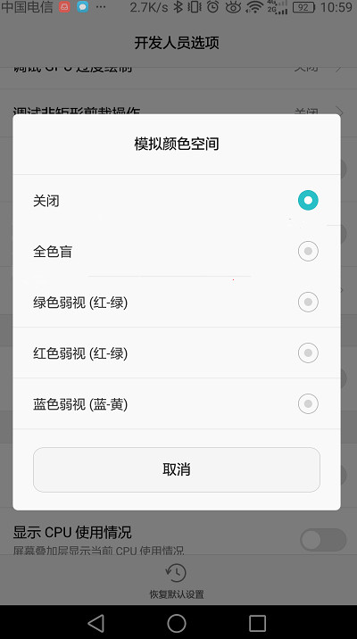 3、在弹出的选项中,选择关闭即可退出灰色屏模式。