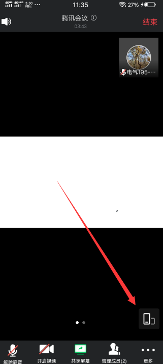 3、进入房间后,点击腾讯会议界面的横屏按钮即可。