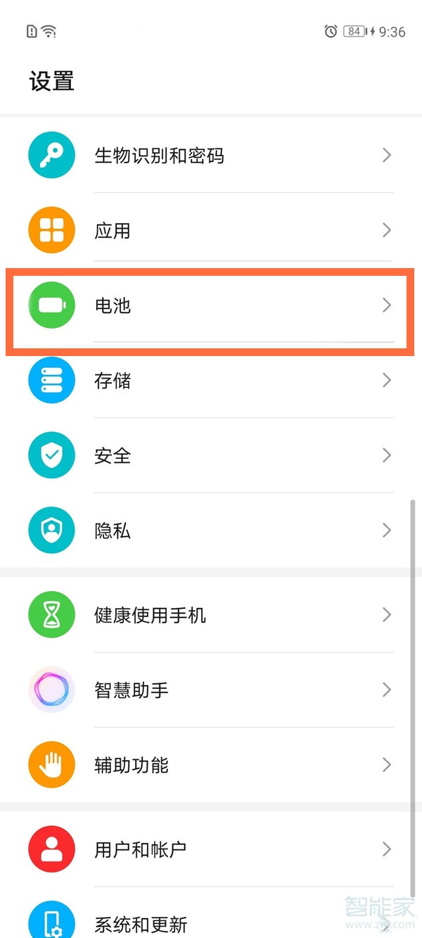 1、在设置菜单中找到【电池】选项。