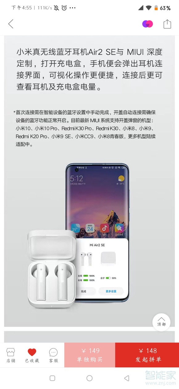 如果是首次使用小米air2se耳机,手机也不会出现弹窗,必须在蓝牙设置中手动完成。目前miui系统支持开盖弹窗的机型有小米10、小米10pro、redmi k30pro、redmi k30、小米8、小米9、redmi k20pro、小米9se、小米cc9、小米青春版,更多机型还在适配中,请耐心等待。