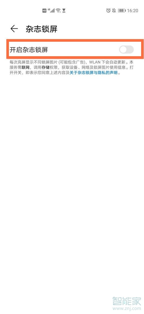 3、打开【开启杂志锁屏】开关。