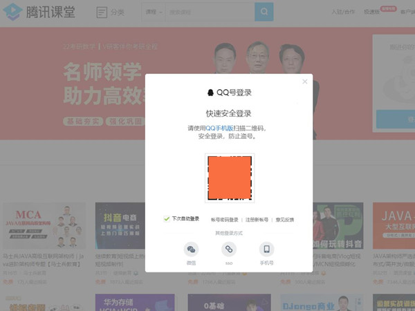 在手机版腾讯课堂APP中没有扫码功能,只要电脑版的腾讯课堂在登录时可以使用QQ或者微信扫码登录,使用QQ或者微信扫码登录具体操作步骤如下: