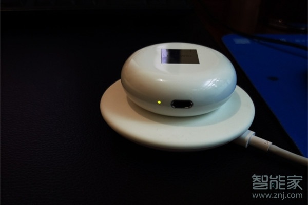 1、将双耳放入充电盒,将充电盒放置在无线充电底座的正中心,注意有logo的金属面朝上放置。
