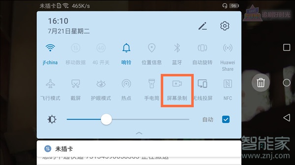 1、打开韩剧tv,在需要截取视频的地方下拉手机状态栏,在控制中心点击屏幕录制。
