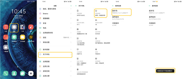 1、打开桌面【设置】-【关于手机】-【版本信息】,连续点击【版本号】多次后,输入锁屏密码(涉及隐私内容,暂无截图)会提示“您已处于开发者模式”如下图: