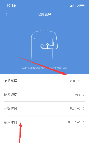 3、点击【抬腕亮屏】可选择全天开启、自定义开启。