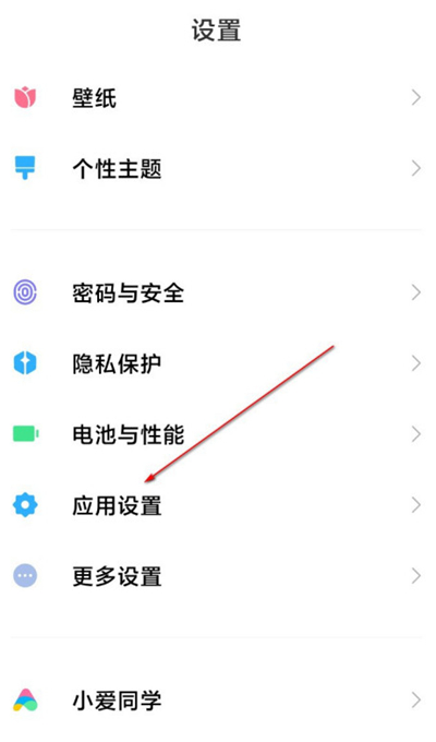 1、打开小米手机桌面,点击设置,点击应用设置。