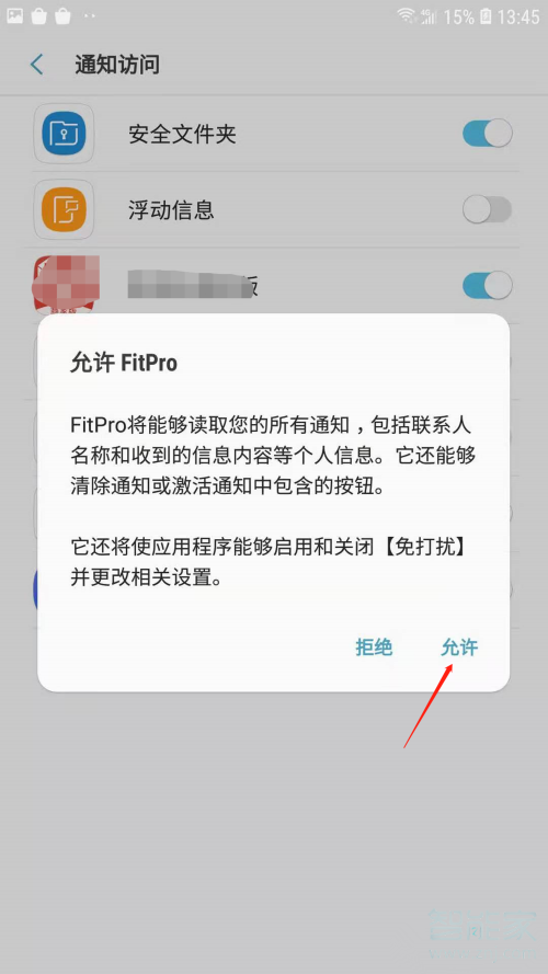 3、在弹出的对话框中点击【允许】,允许fitpro使用权限。