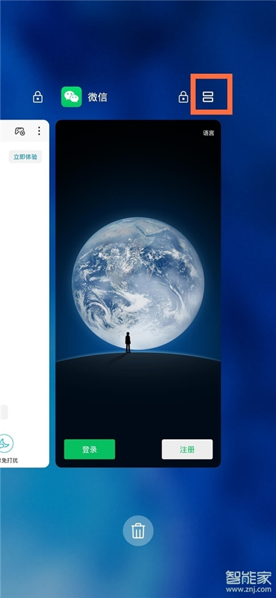 方法2、当您使用手势导航时,从屏幕下方上滑并停顿进入多任务管理界面,点击应用右上角的双矩形框图标。