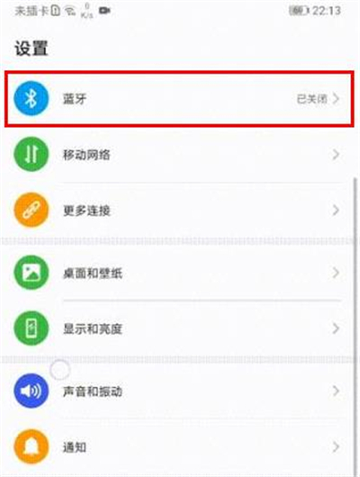 2、在设置界面找到【蓝牙】选项,点击进入。