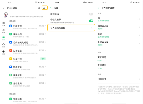 4、使用一段时间后会自动识别家、公司、出行时间、WLAN等信息,如果识别不对的话可以点击点击【家】、【公司】修改相应的详细地址,再设置下出行方式,后续上班、下班就可以直接通过负一屏快速点击查看路线,进行导航咯~