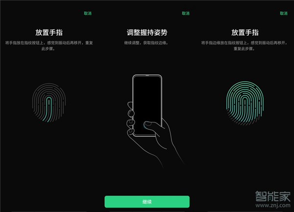3.当手指感到震动时,抬起手指并调整手指姿势再次按压,重复多次后指纹即可录入成功。