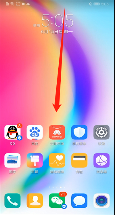 2、打开华为手机,下拉手机屏幕调出操作后台。
