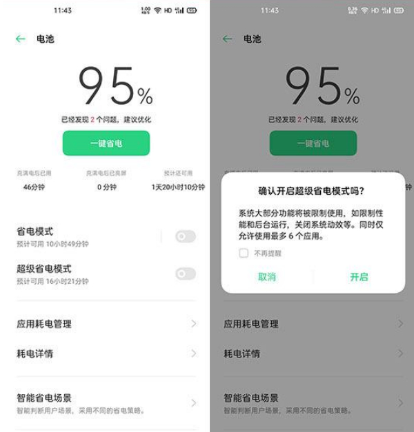 OPPO Reno4采用了4020mAh大电池,电池管理方案全面升级,提供全场景智能省电优化。支持5G智能调度功能,能够对不同APP进行智能功耗控制,根据实际场景,在不影响用户可感知网速的前提下采取不同的传输策略以控制功耗,提升整机续航。
