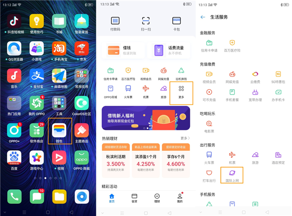 1、通过桌面的【钱包】—【更多】—【国际上网】进入以下相应界面。