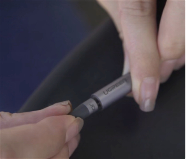 1、首先我们拿出nova6手机包装盒里面的type-c转接头,将耳机插入type-c转接头圆形孔的那一端。