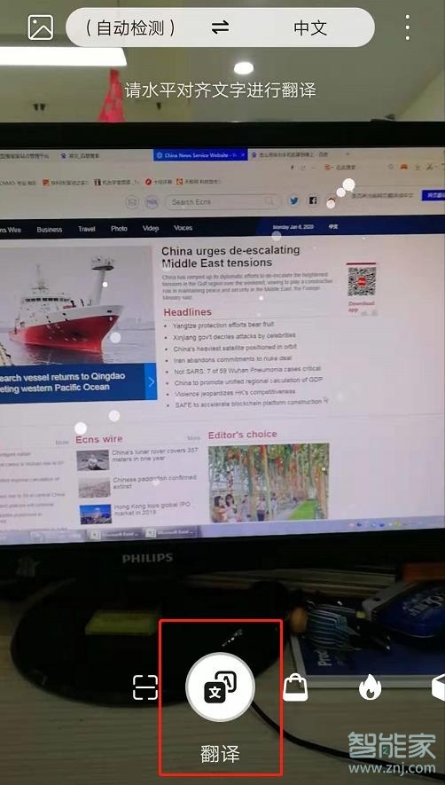2、切换到【翻译】选项,将镜头对准需要翻译的图片即可。