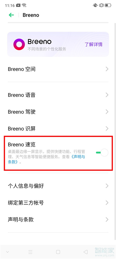 3、点击【Breeno速览】右边的按钮,关闭即可。