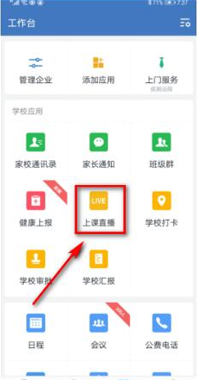2、接着点击【上课直播】功能。