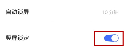 3、再将竖屏锁定后方按键往右拨动至蓝色可以开启竖屏锁定;而如果将按键往左拨动至灰色的话可以关闭竖屏锁定,让屏幕自动旋转。