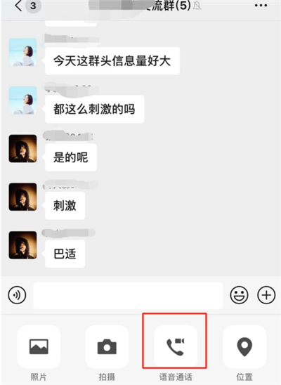 1、打开微信,进入一个要进行视频通话的群聊,点击+号