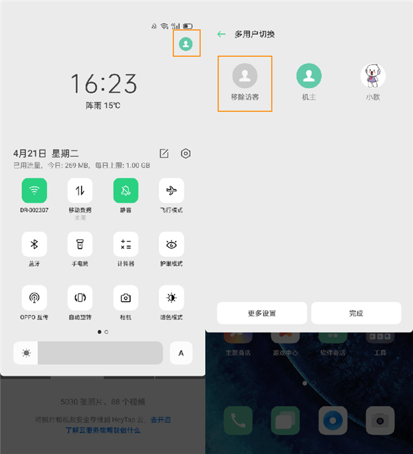 访客如果不用了,可以下拉两次通知栏 >点击多用户图标,选择移除访客。