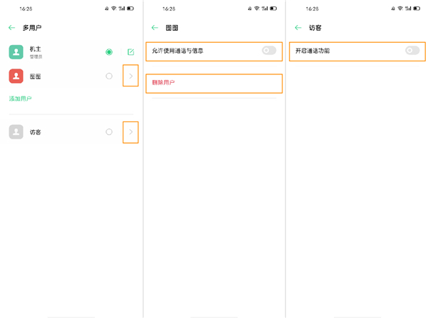还可以对添加的用户、访客进行相关通话、信息之类的功能开启或关闭设置。