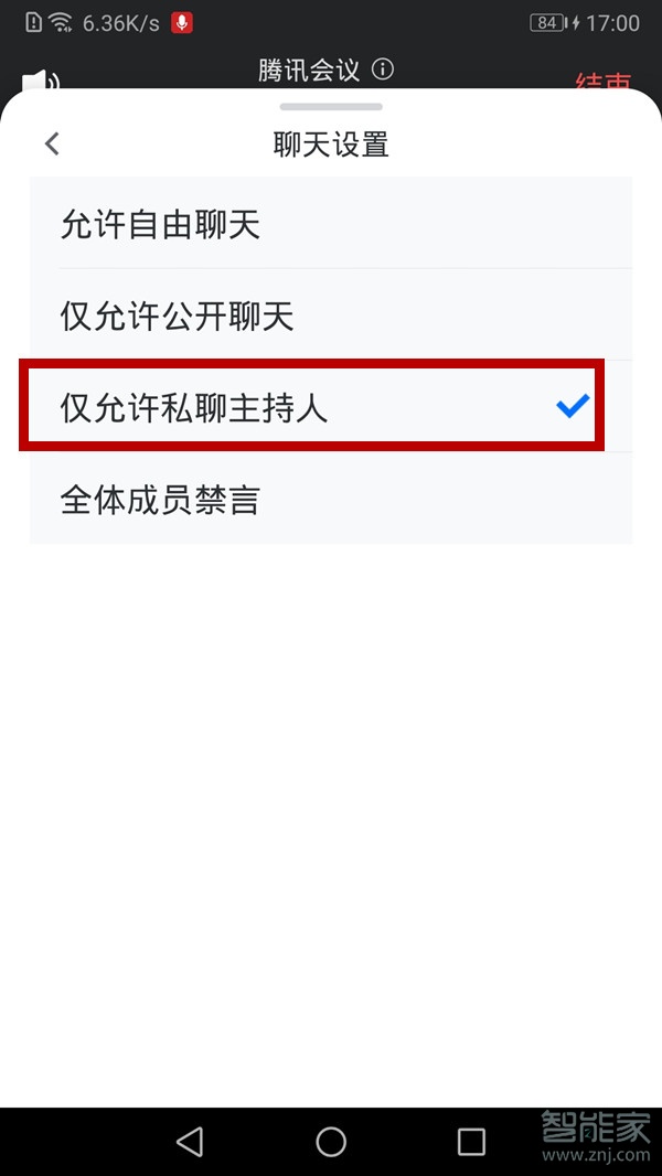 5、返回聊天界面,输入投票选项内容,选择发送给所有参会人员。
